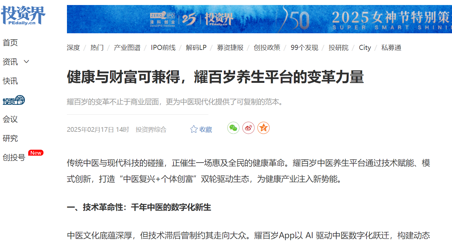 传统中医与现代科技的碰撞,正催生一场惠及全民的健康革命。耀百岁中医养生平台通过技术赋能、模式创新,打造“中医复兴+个体创富”双轮驱动生态,为健康产业注入新势能。